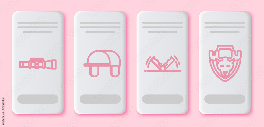 Set Line Sniper Optical Sight Hunter Hat Trap Hunting And Moose Head On Shield White Rectangle Button Vector Stock Vector Adobe Stock